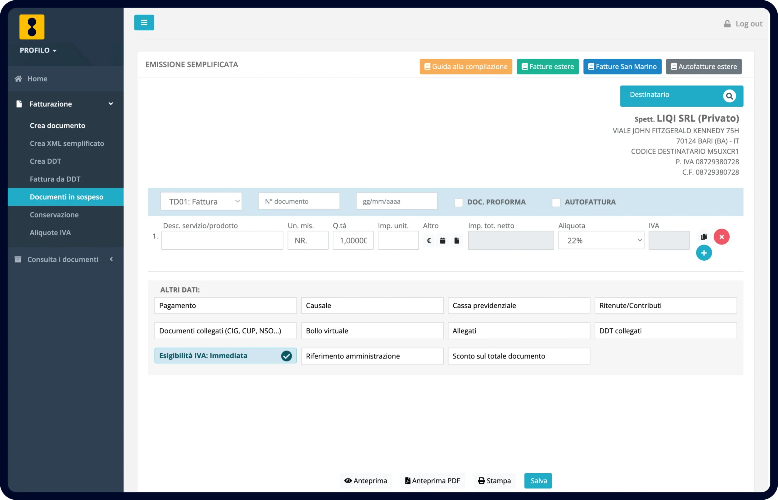 Compila la fattura attraverso le nostre semplici schermate